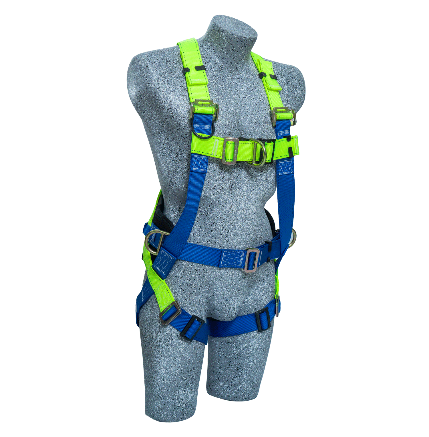 Posee 2 argollas laterales para realizar actividades de posicionamiento, 1 argolla pectoral para actividades de detención de caídas limitas (conexiones al pecho con longitud máximo de 60 cm), ascenso y descenso controlado, 1 argolla dorsal para restricción y detención de caídas.