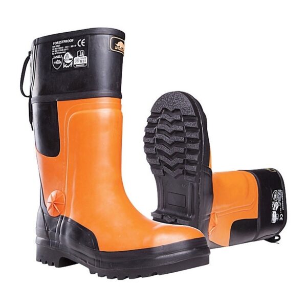 • Resistente suela indentada de caucho vulcanizado inyectado con nitrilo. De alta resistencia al derrape en terrenos boscosos.